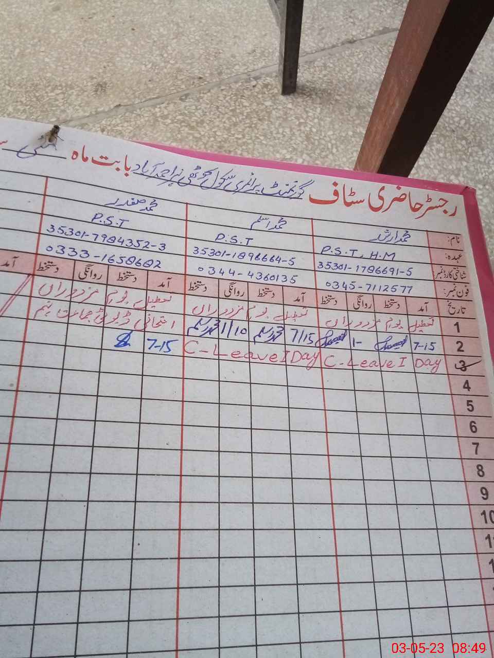 | Name: Mu**** Sa**** Designation: (School Headmaster's/Headmistress's) PST Phone/Cell Number: 03**** |