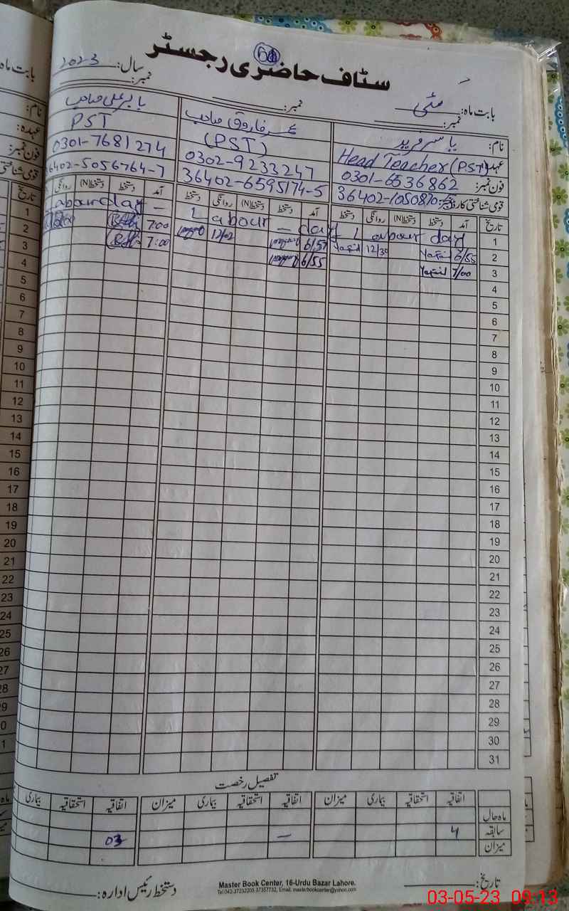 | Name: YA**** FA**** Designation: (School Headmaster's/Headmistress's) PST Phone/Cell Number: 03**** |