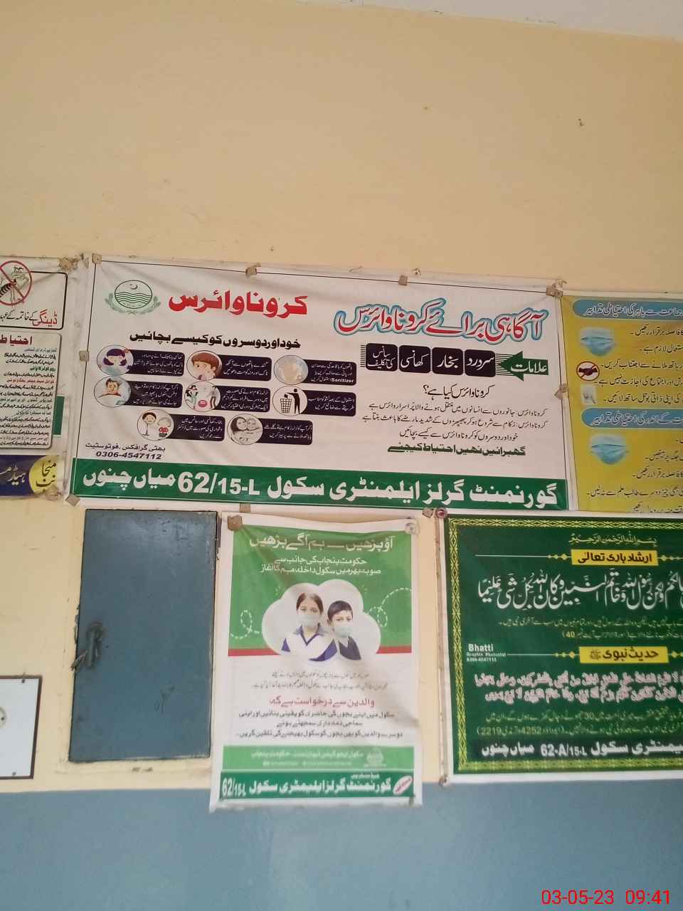 | EMIS Code: 36430280 | Name of School: GGES 62/15-L, P/O 67/15-L VIJIHIAN WALA, MIAN CHANNU | |||