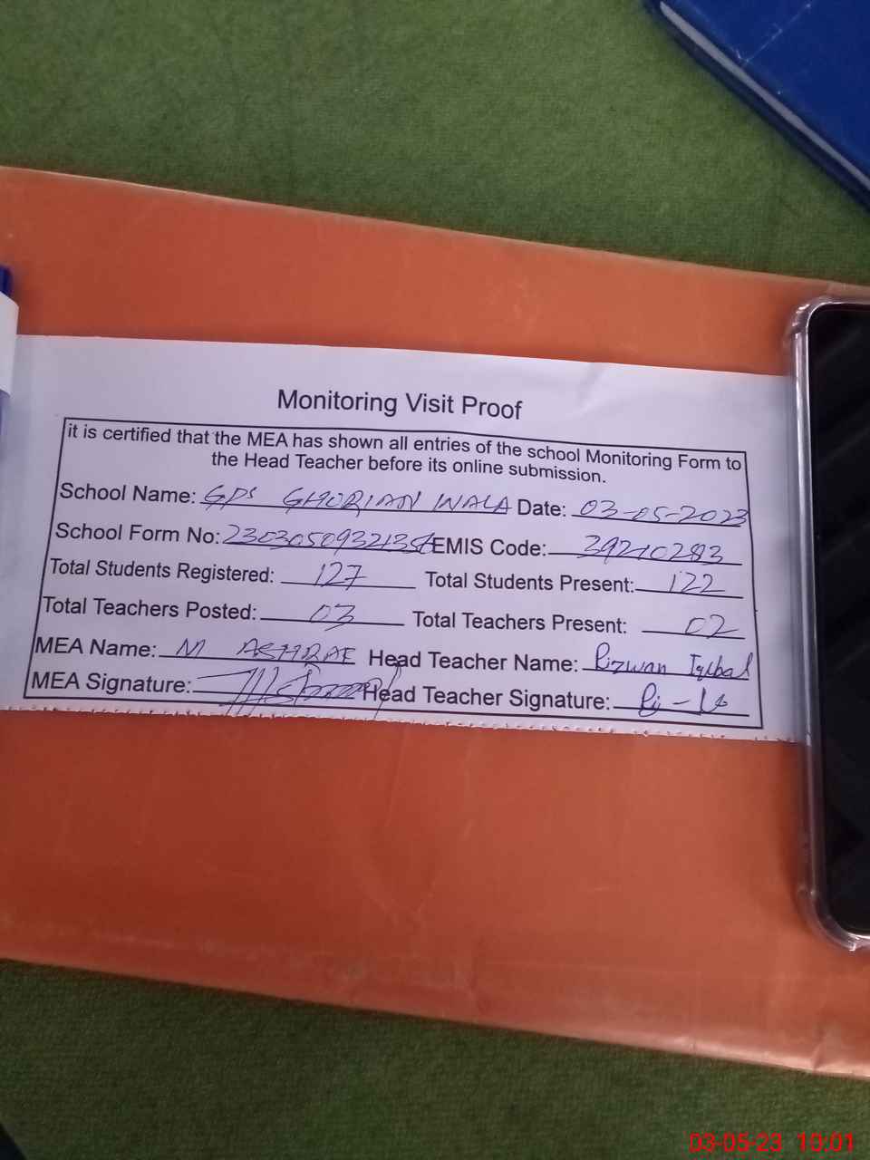 | EMIS Code: 39210283 | Name of School: GPS GHORIAN WALA | |||