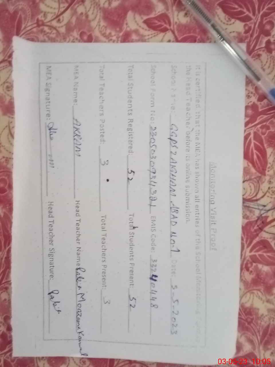 | EMIS Code: 33240448 | Name of School: GGPS ZAIGHAM ABAD NO. 1 | |||