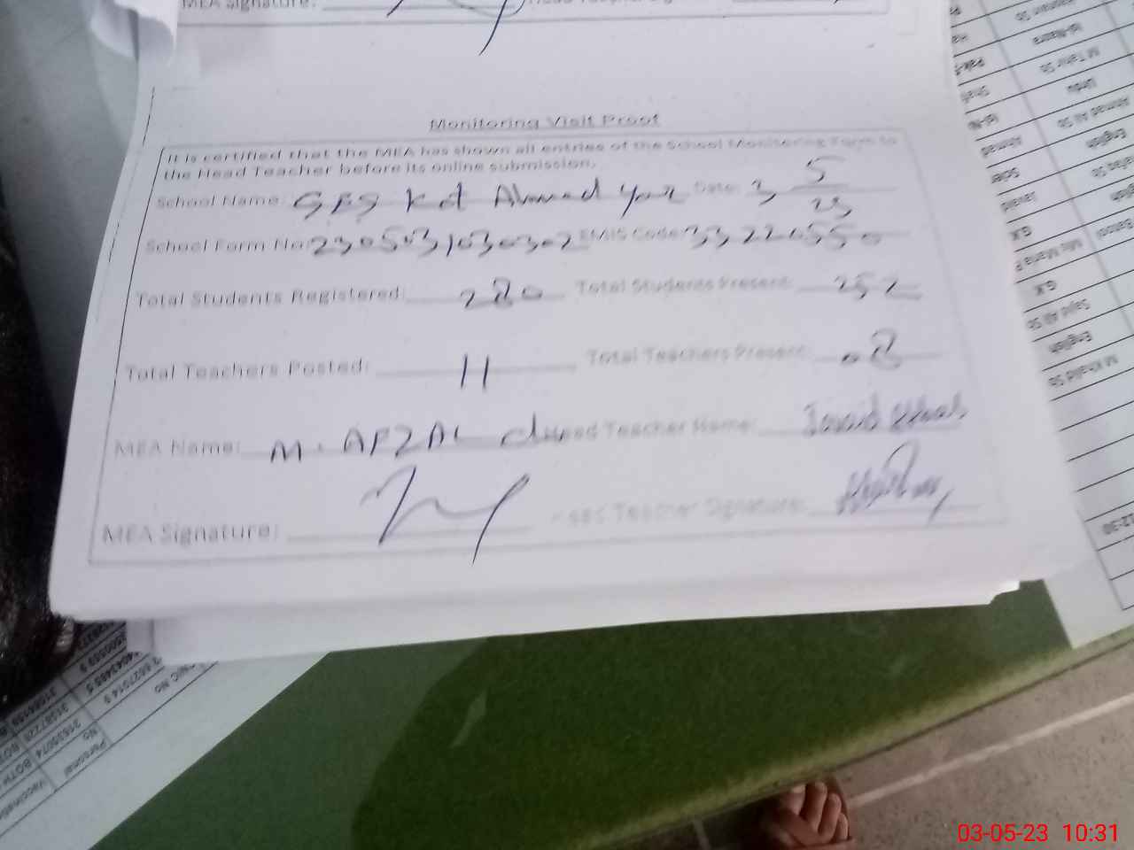 | EMIS Code: 33220550 | Name of School: GES KOT AHMAD YAR | |||