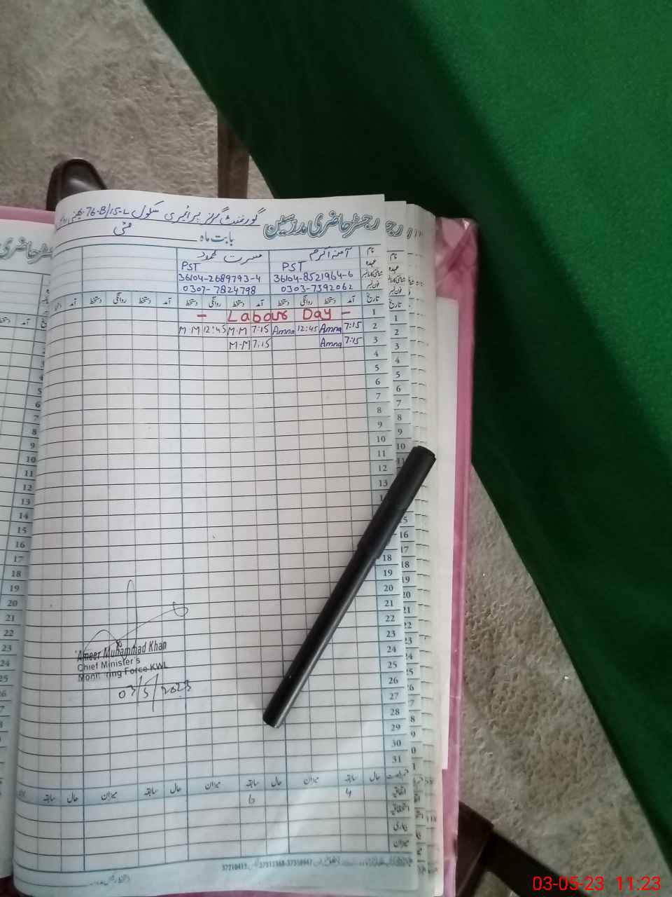 | Name: Aa**** Ak**** Designation: (School Headmaster's/Headmistress's) PST Phone/Cell Number: 03**** |