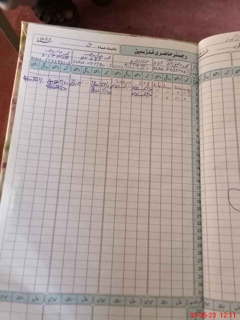 | Name: Mu**** Ra**** Designation: (School Headmaster's/Headmistress's) S.S.T.(GEN) Phone/Cell Number: 03**** |