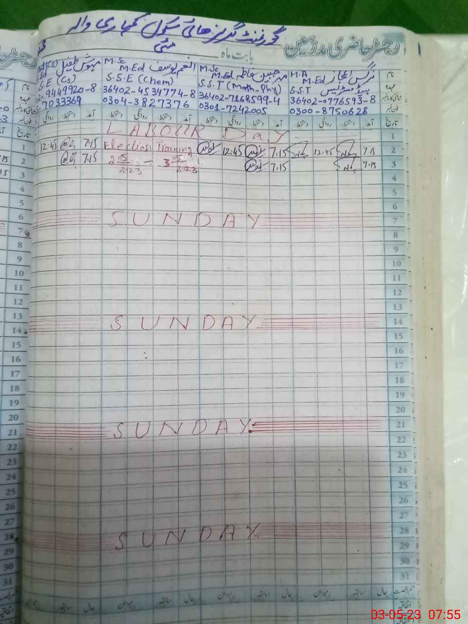 | Name: Ma**** Fa**** Designation: (School Headmaster's/Headmistress's) S.S.T.(Science ) Phone/Cell Number: 03**** |