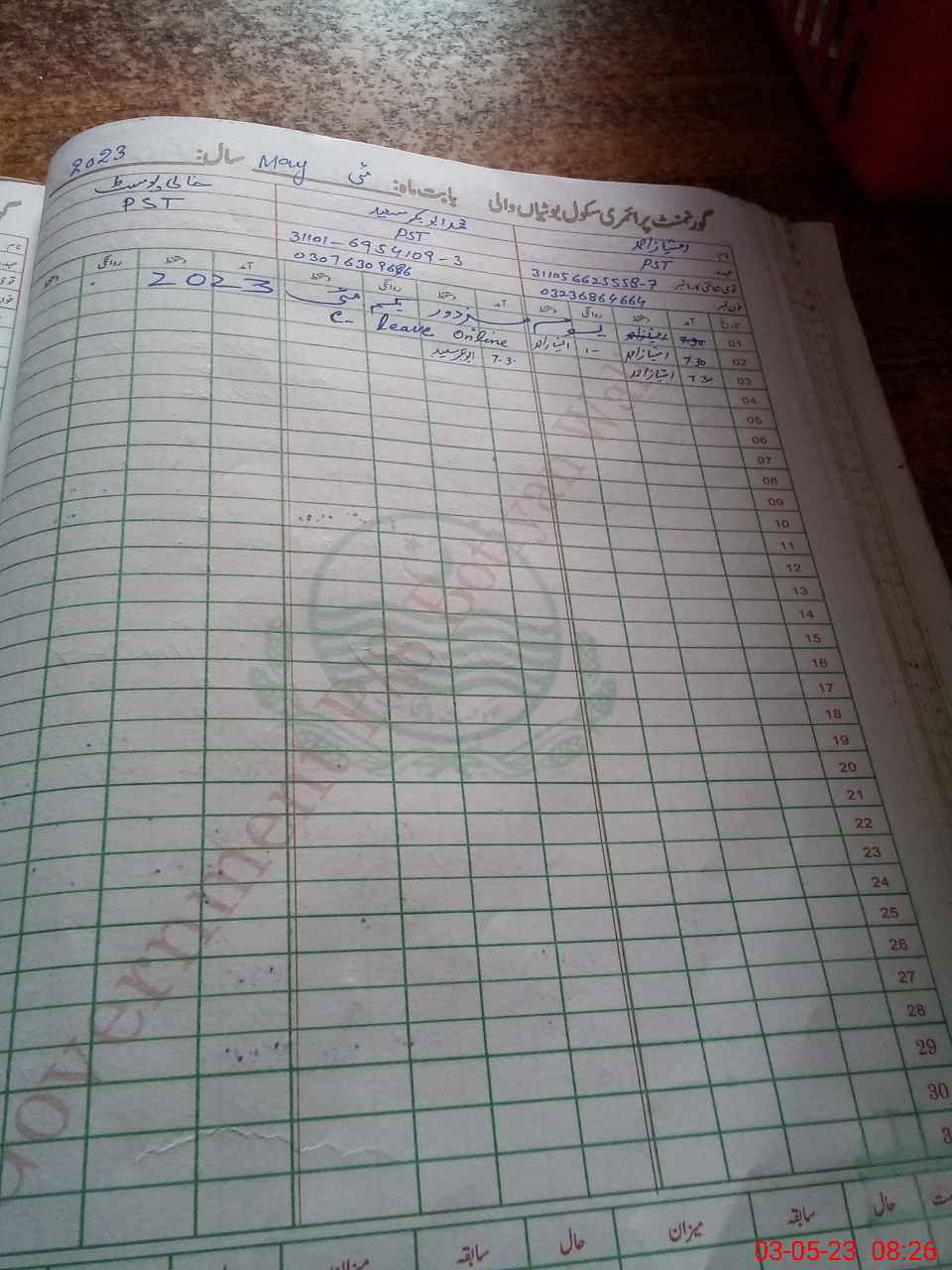 | Name: Im**** Ah**** Designation: (School Headmaster's/Headmistress's) PST Phone/Cell Number: 03**** |