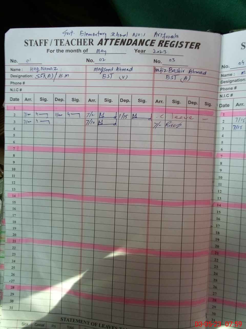 | Name: HA**** NA**** Designation: (School Headmaster's/Headmistress's) SST (GENERAL) Phone/Cell Number: 03**** |