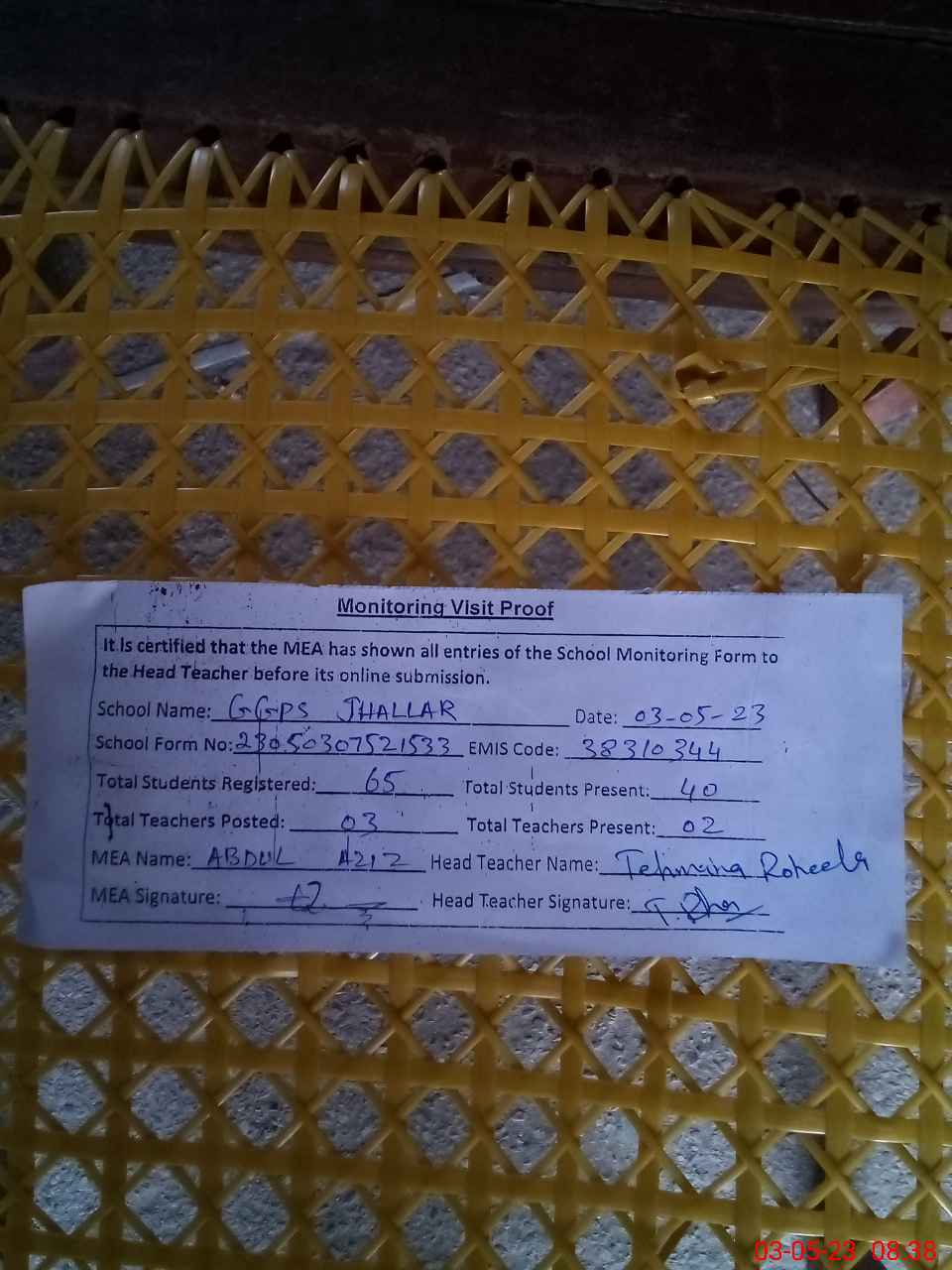 | EMIS Code: 38310344 | Name of School: GGPS JHALLAR | |||