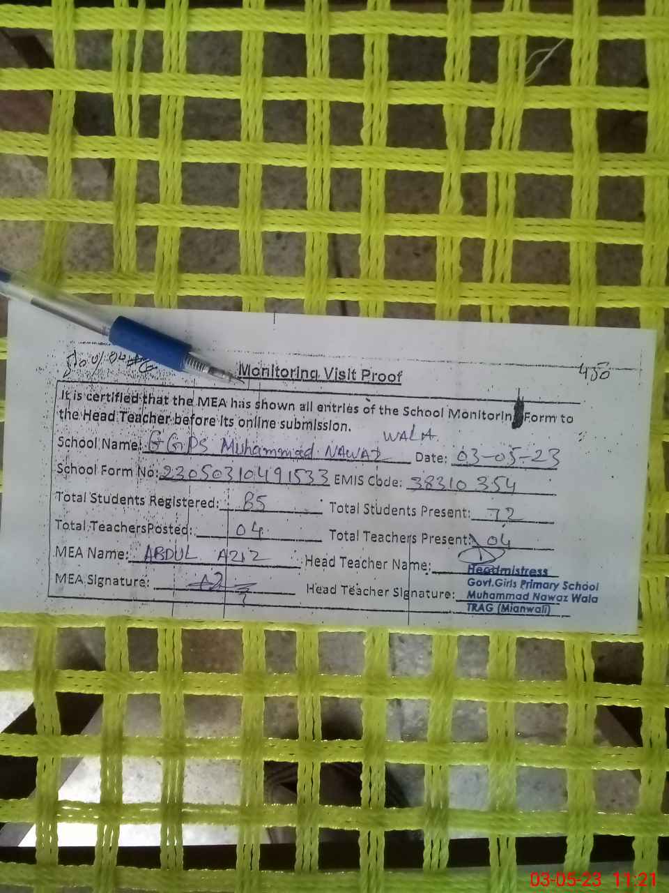 | EMIS Code: 38310354 | Name of School: GGPS MUHAMMAD NAWAZ WALA | |||