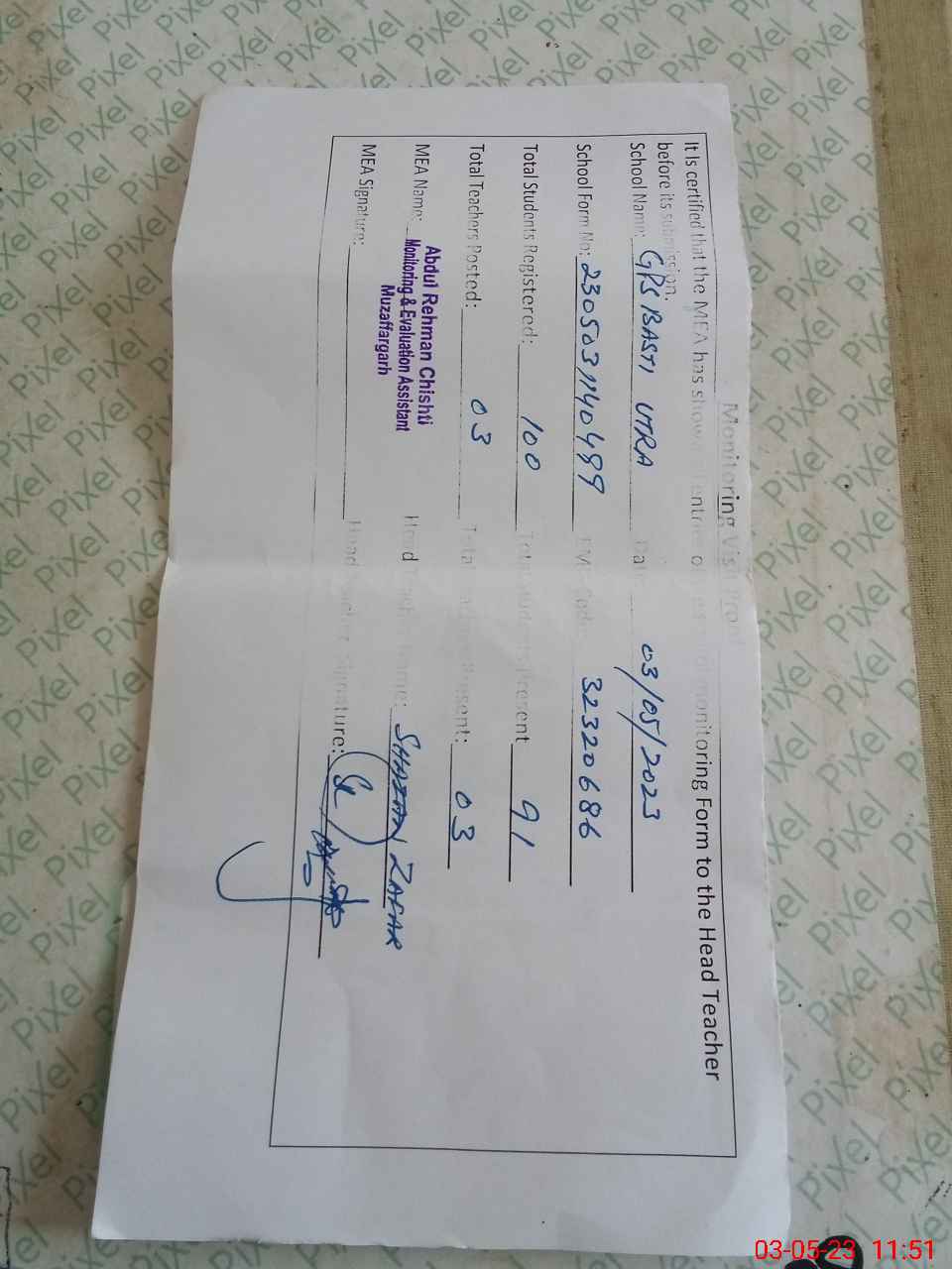 | Name: Sa**** Designation: (School Headmaster's/Headmistress's) ESE Phone/Cell Number: 03**** |