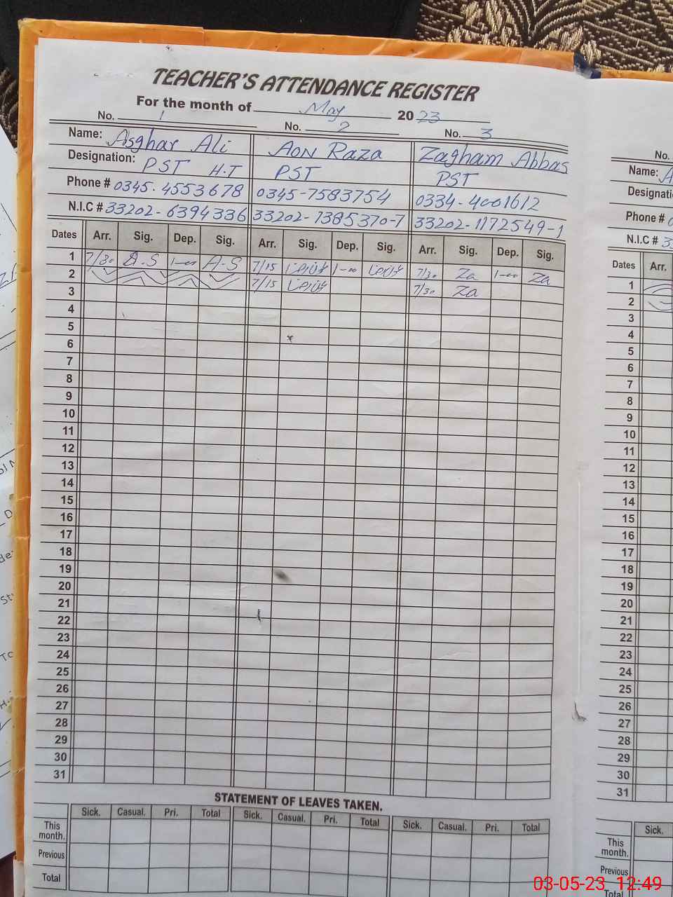| Name: As**** Al**** Designation: (School Headmaster's/Headmistress's) PST/PTC/JV Phone/Cell Number: 03**** |