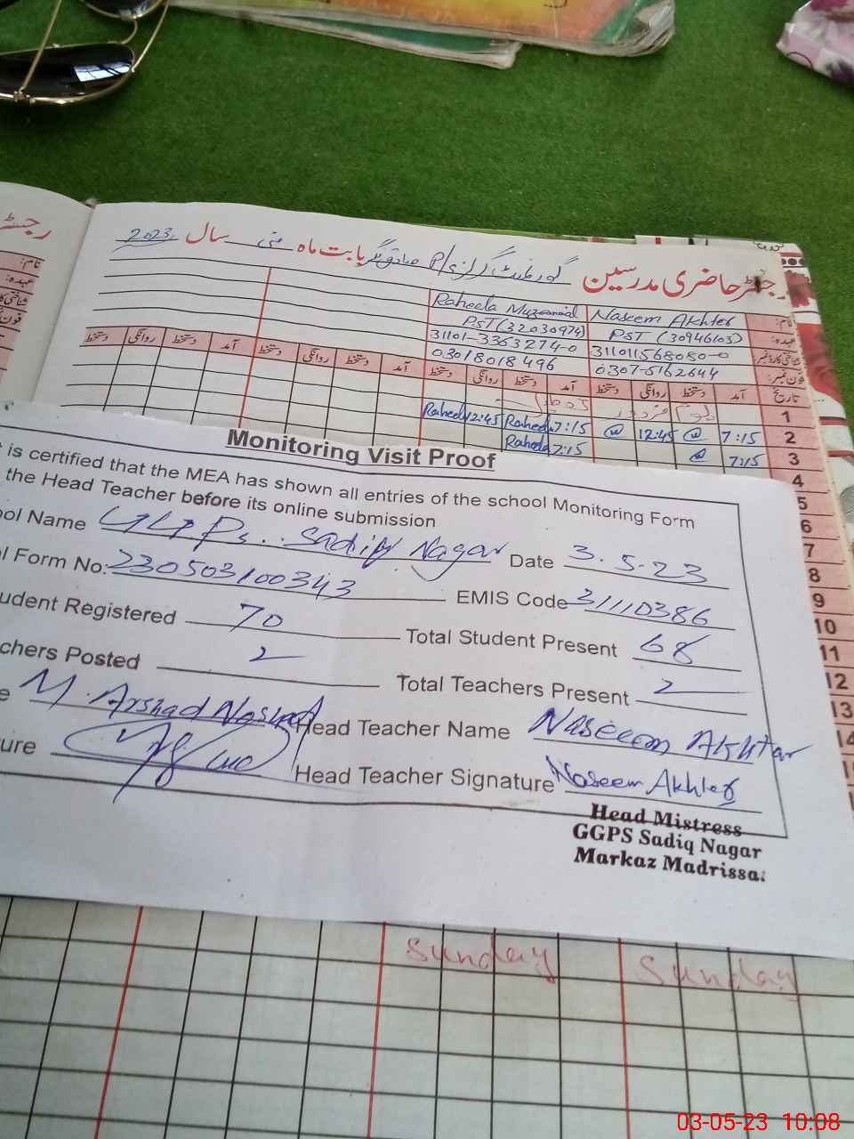 | Name: NA**** AK**** Designation: (School Headmaster's/Headmistress's) PST Phone/Cell Number: 03**** |