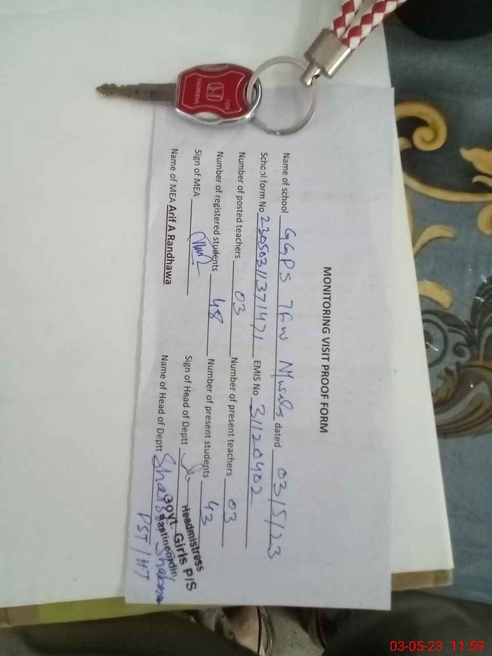 | EMIS Code: 31120402 | Name of School: GGPS CHAK 7/FW NOOR DIN WALA | |||