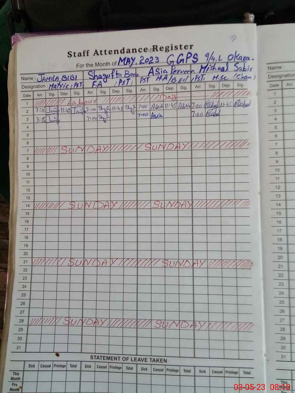 | District: OKARA | Tehsil: OKARA | Markaz: 4/4.L-FEMALE | Level: Primary | |