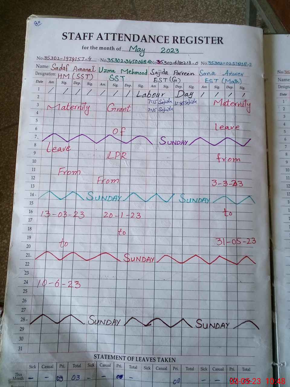 | 35**** | Na**** Ir**** | PST | Regular | 30 | 0 | 0 | 30 | 0 | 0 | 0 | 0 | 0 | Maternity |