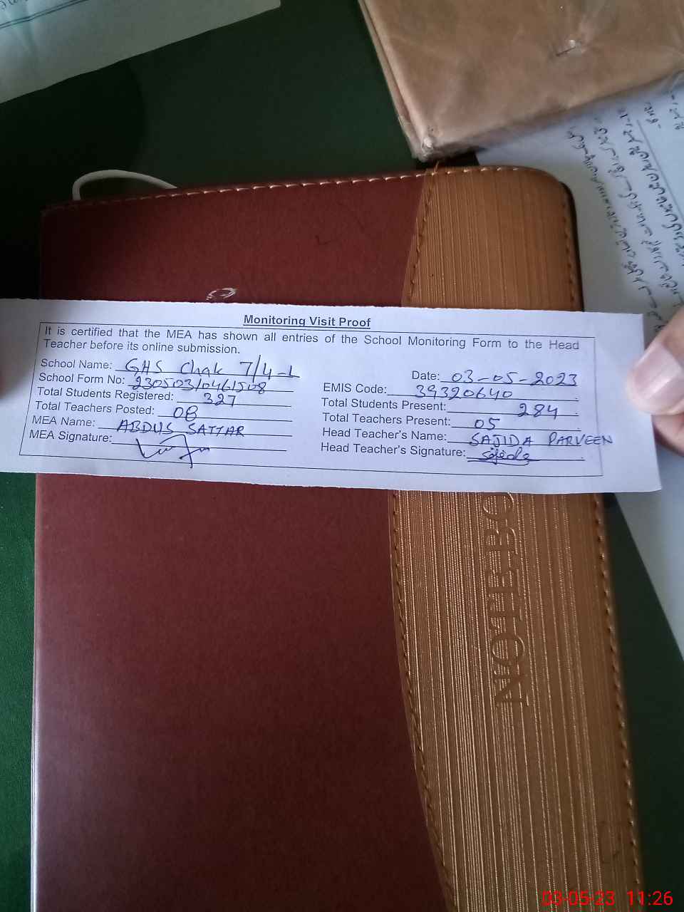 | EMIS Code: 39320640 | Name of School: GGHS CHAK NO. 7/4-L | |||