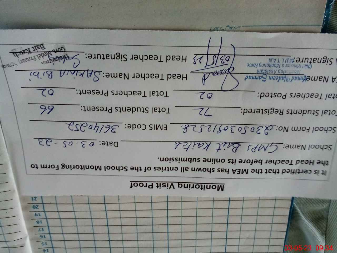 | EMIS Code: 36140252 | Name of School: GMPS BAIT KAITCH | |||