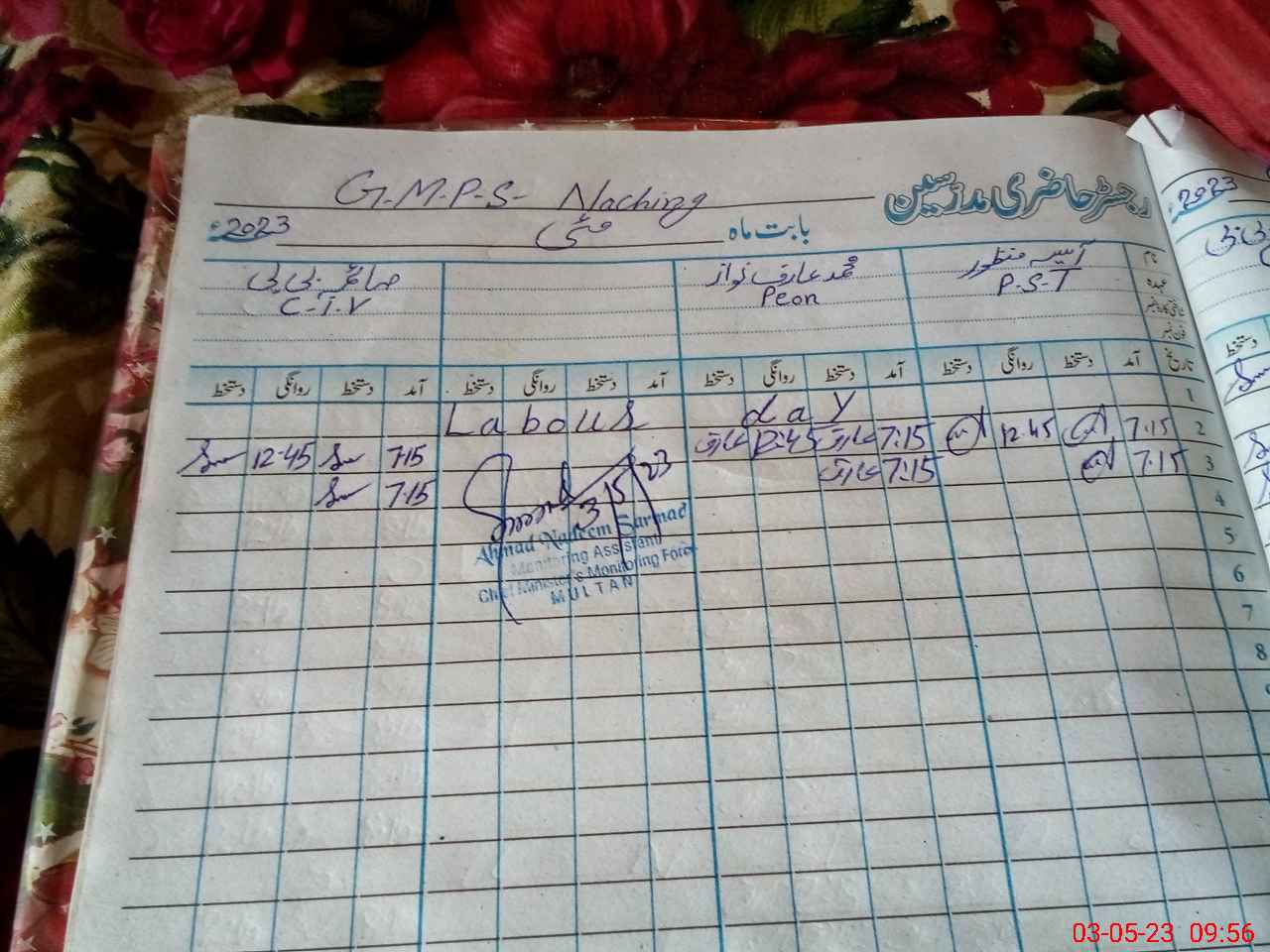| Name: Aa**** Ma**** Designation: (School Headmaster's/Headmistress's) PST/PTC/JV Phone/Cell Number: 03**** |