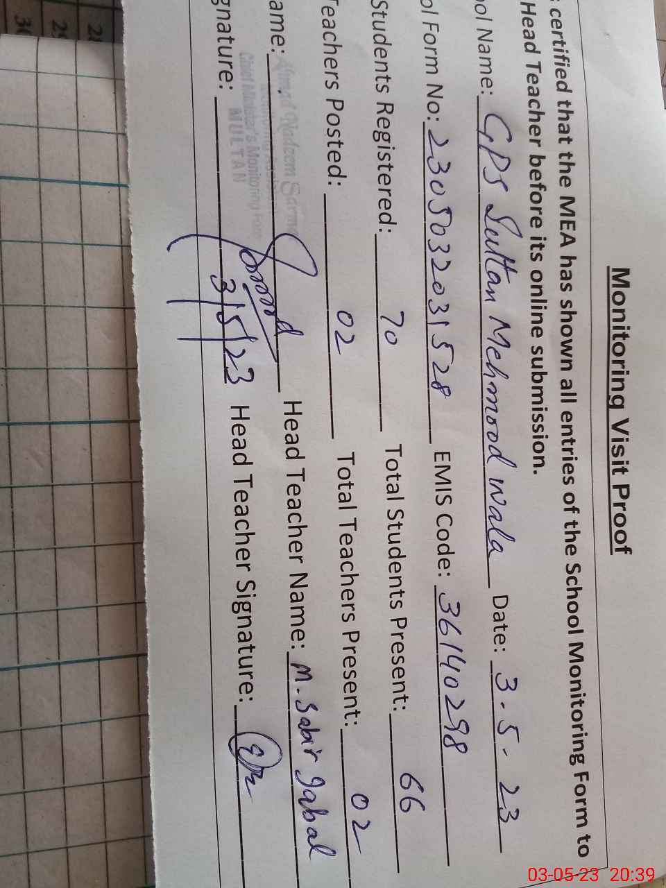| EMIS Code: 36140298 | Name of School: GPS SULTAN MEHMOOD WALA P/O BEAT KATCH | |||