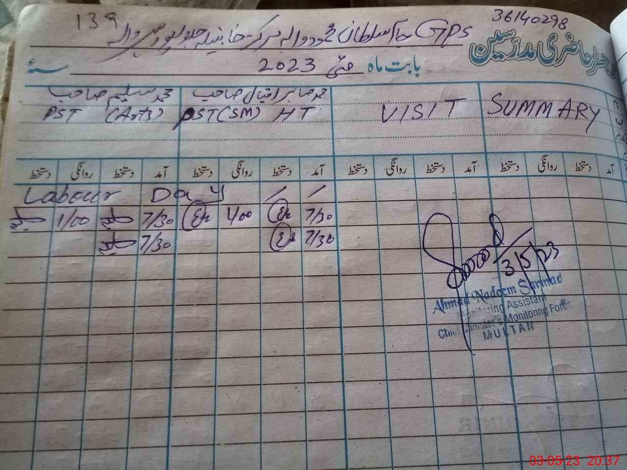 | Name: Mu**** Kh**** Designation: (School Headmaster's/Headmistress's) PS SP Phone/Cell Number: 03**** |