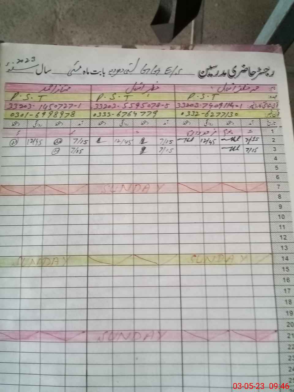 | Name: MU**** MU**** IQ**** Designation: (School Headmaster's/Headmistress's) PST Phone/Cell Number: 03**** |