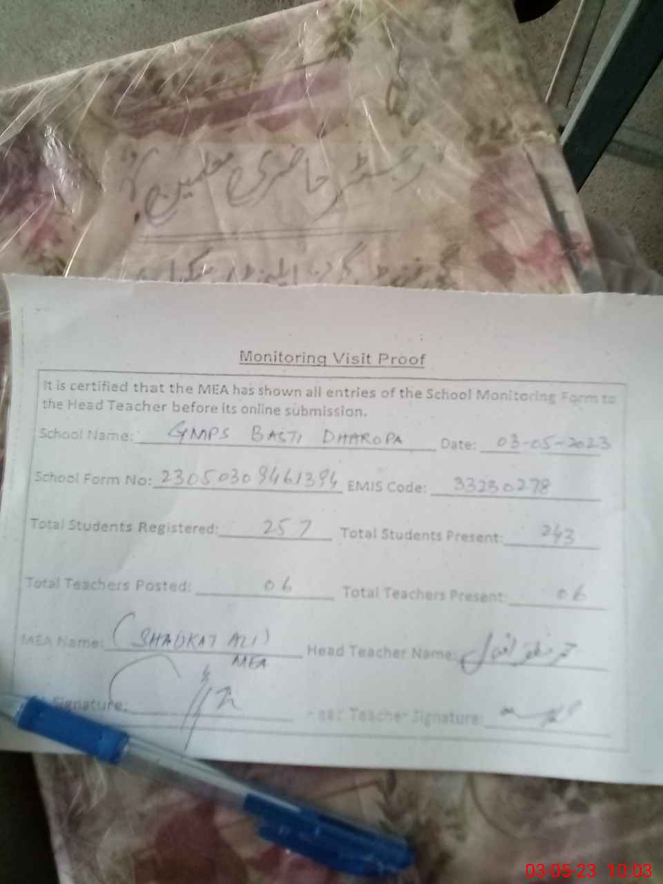 | EMIS Code: 33230278 | Name of School: GMPS BASTI DHAROOPA | |||