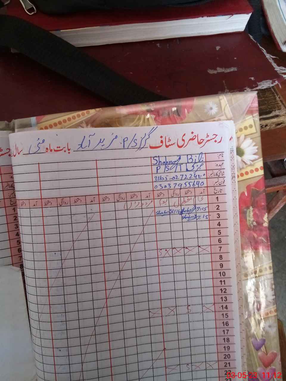 | Name: SH**** BI**** Designation: (School Headmaster's/Headmistress's) PST Phone/Cell Number: 03**** |