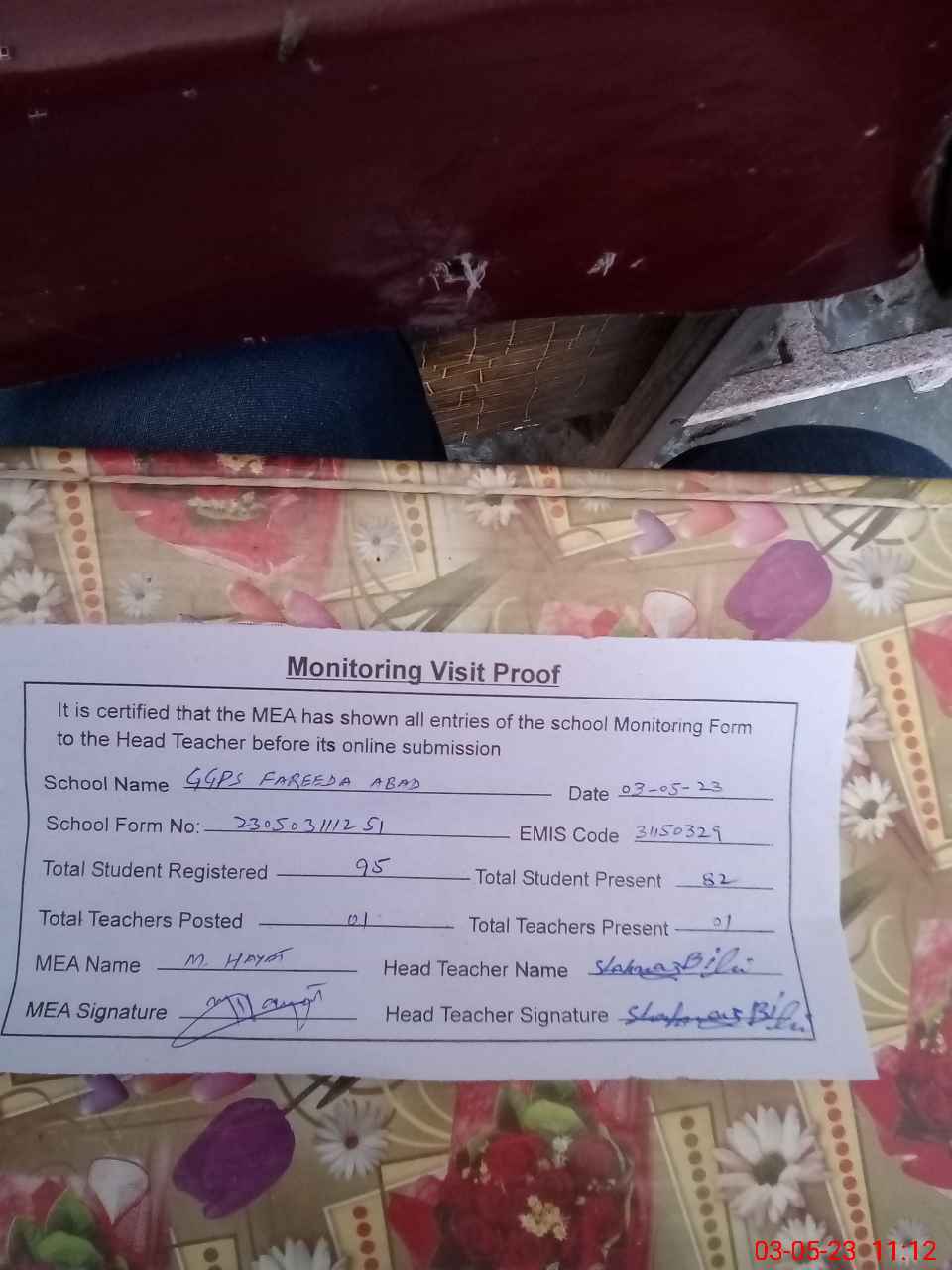 | EMIS Code: 31150329 | Name of School: GGPS FARID ABAD | |||