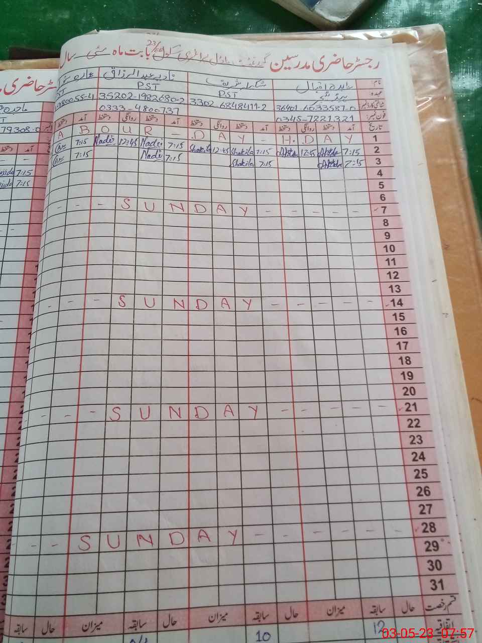 | CNIC | Full Name | Designation | R/C | Absence During Last Calender Month |