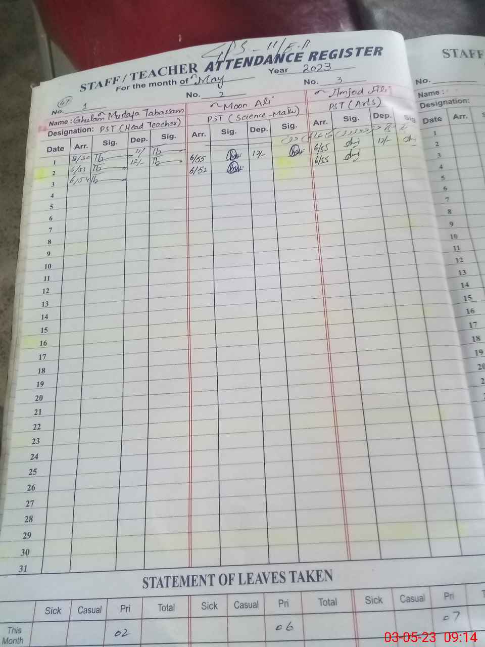 | Name: SH**** FA**** Designation: (School Headmaster's/Headmistress's) PST Phone/Cell Number: 03**** |