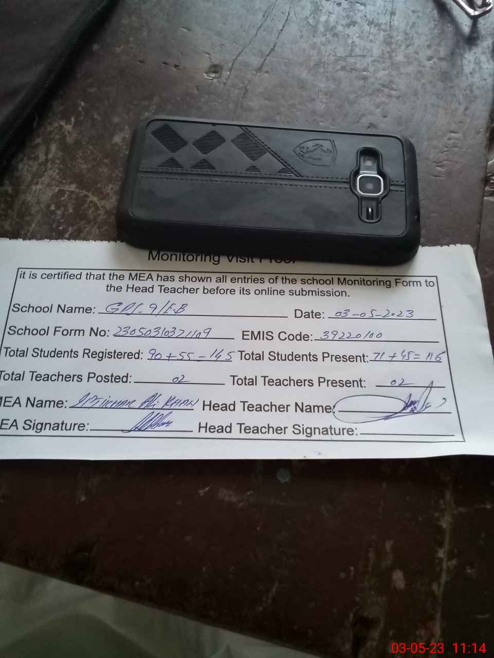 | Attendance Register | Head Teacher | MEA with School | Visit Proof |