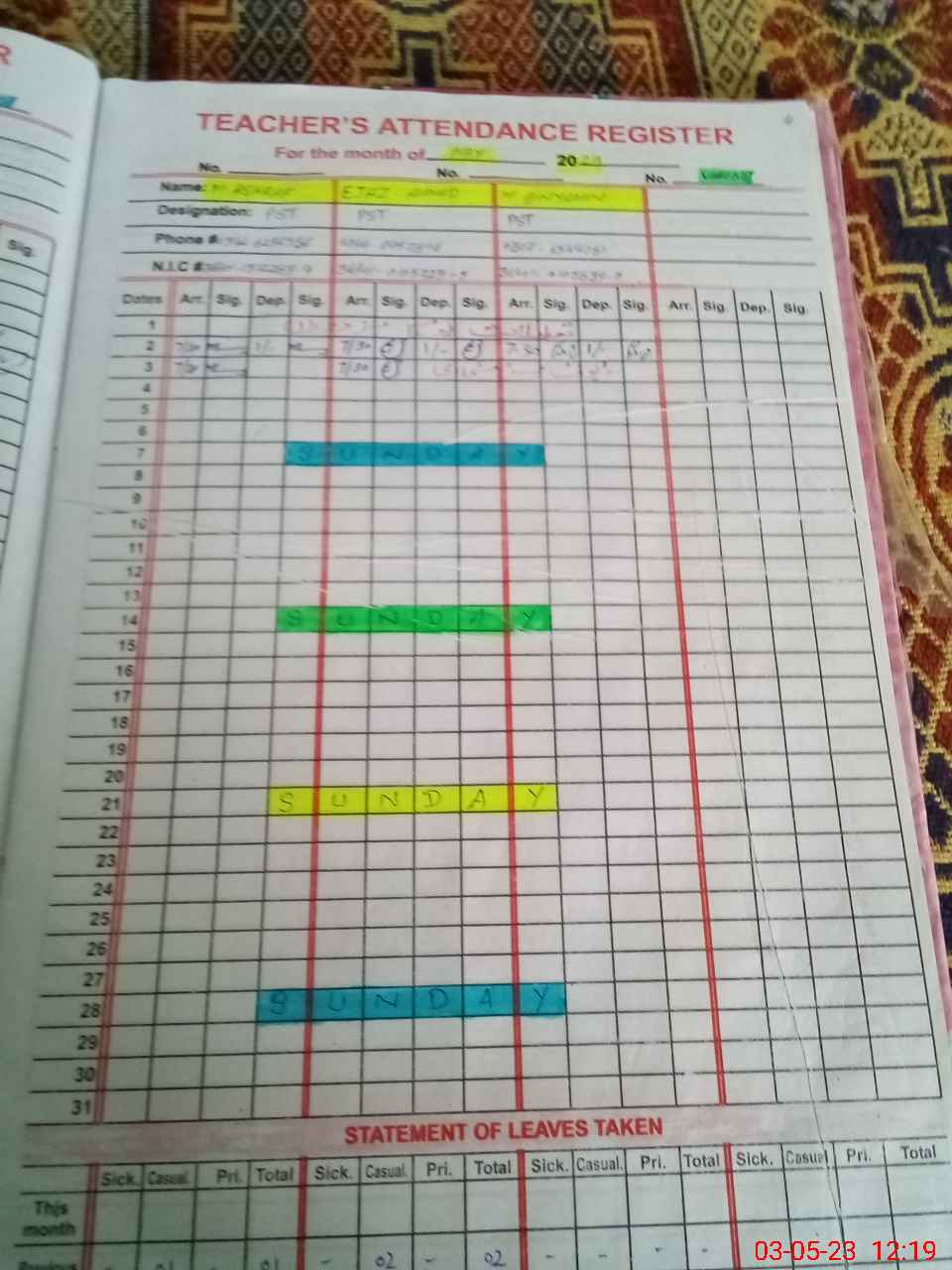 | Name: MU**** AS**** Designation: (School Headmaster's/Headmistress's) PST Phone/Cell Number: 03**** |
