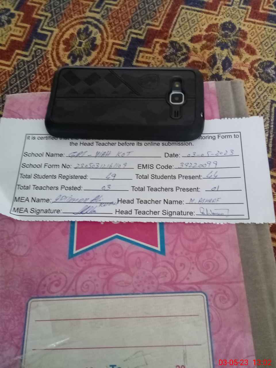 | EMIS Code: 39220099 | Name of School: GPS VIAH KOT | |||