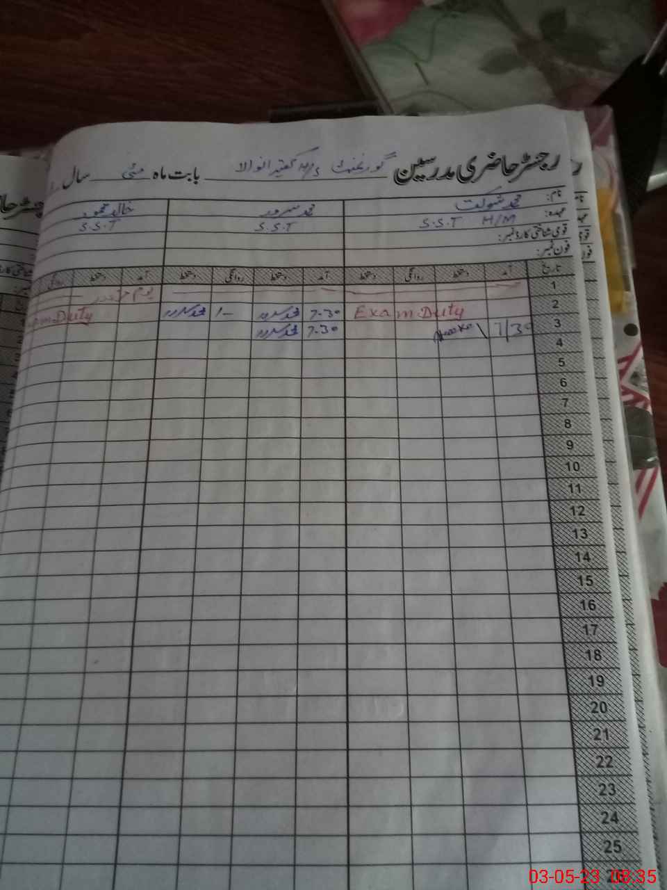 | 31**** | Kh**** Ma**** | SST | Regular | 0 | 0 | 0 | 0 | 0 | 0 | 0 | 0 | 0 | Exam Duty |