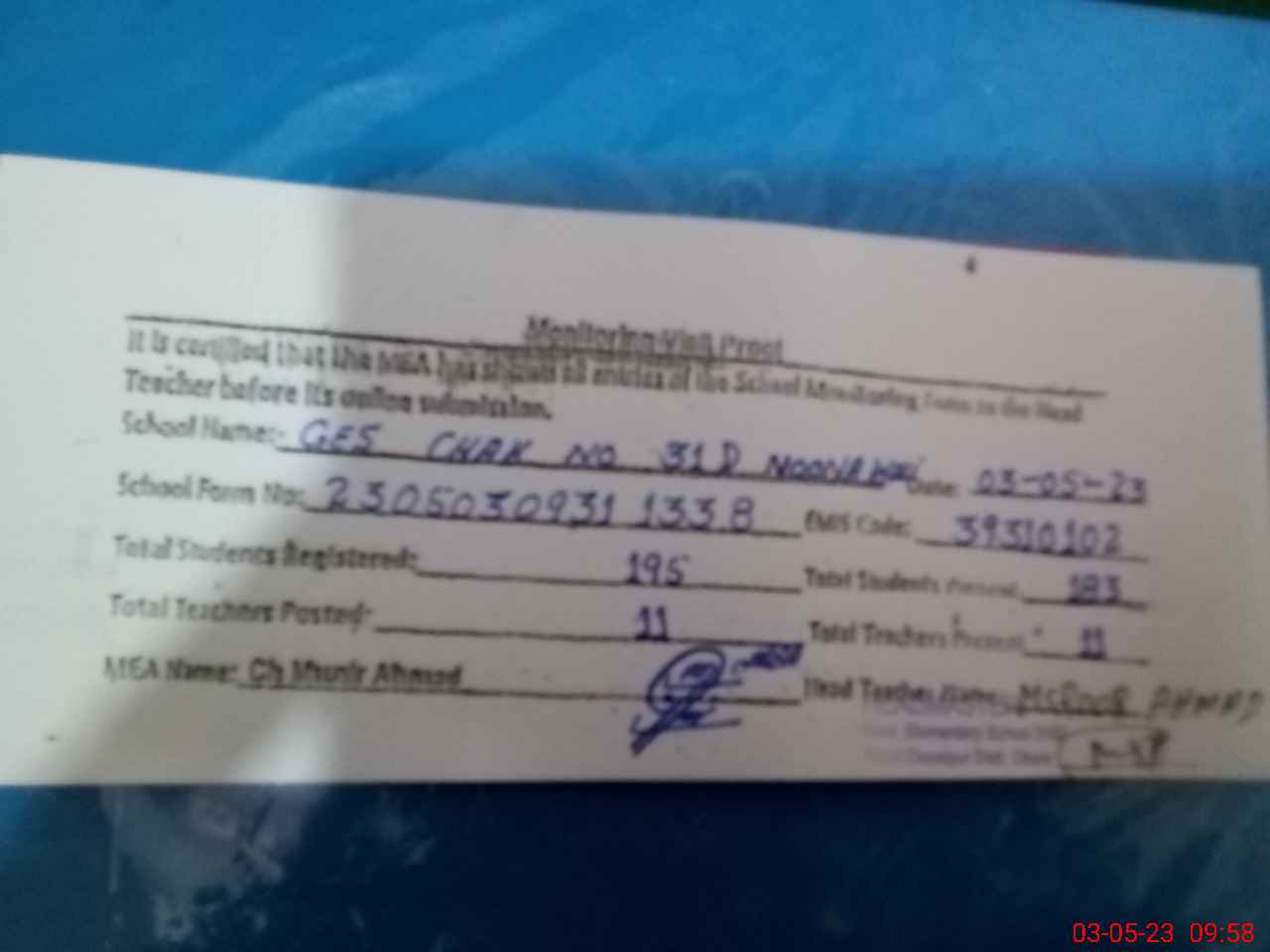 | Certified that this School was Inspected by the Undersigned MEA/DMO Today and the Information Stated Above is as Per Record. | |||||