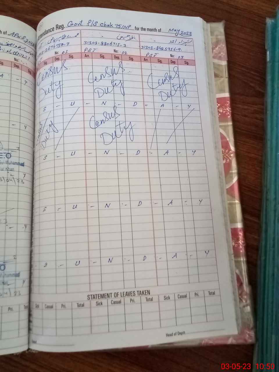 | Remarks (Use Separate Page if Required): Class verification is not updated on mea tab as per sis and four teachers are on census duty and school has insaf afternoon classes with students strength 62 | |||||