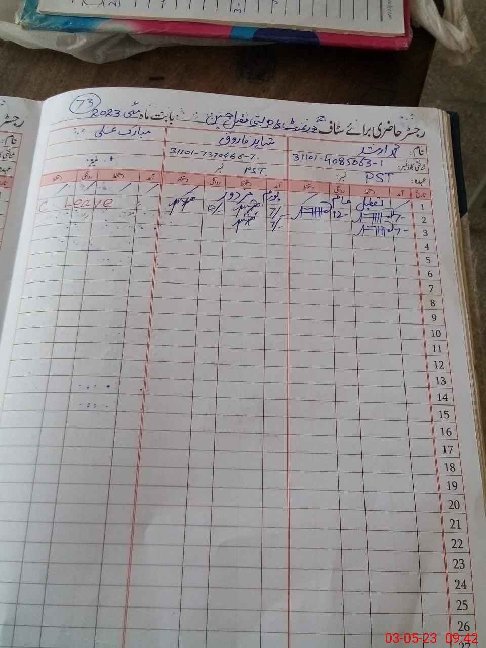 | Name: SH**** FA**** Designation: (School Headmaster's/Headmistress's) PST Phone/Cell Number: 03**** |