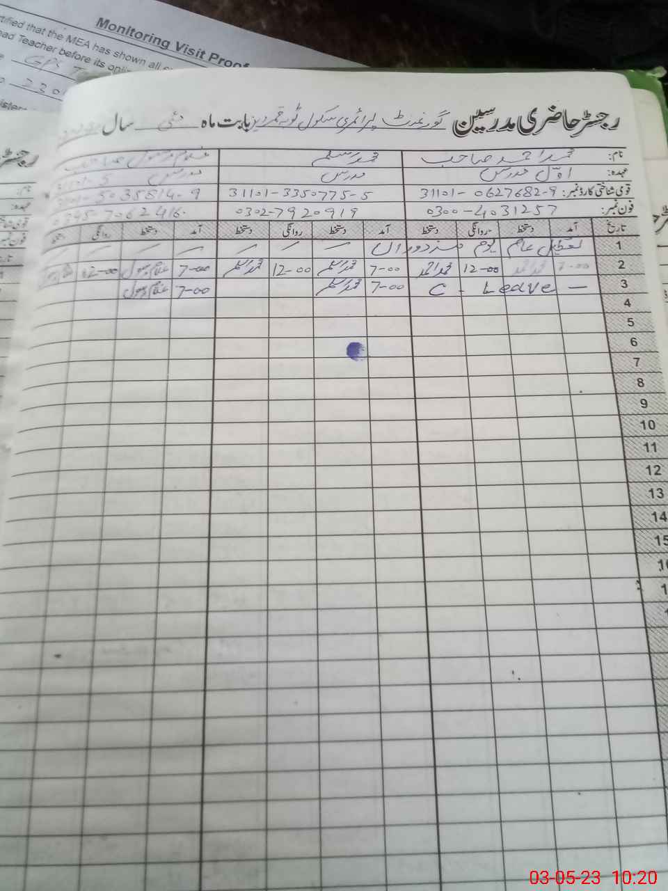 | Name: MU**** AH**** Designation: (School Headmaster's/Headmistress's) PST Phone/Cell Number: 03**** |