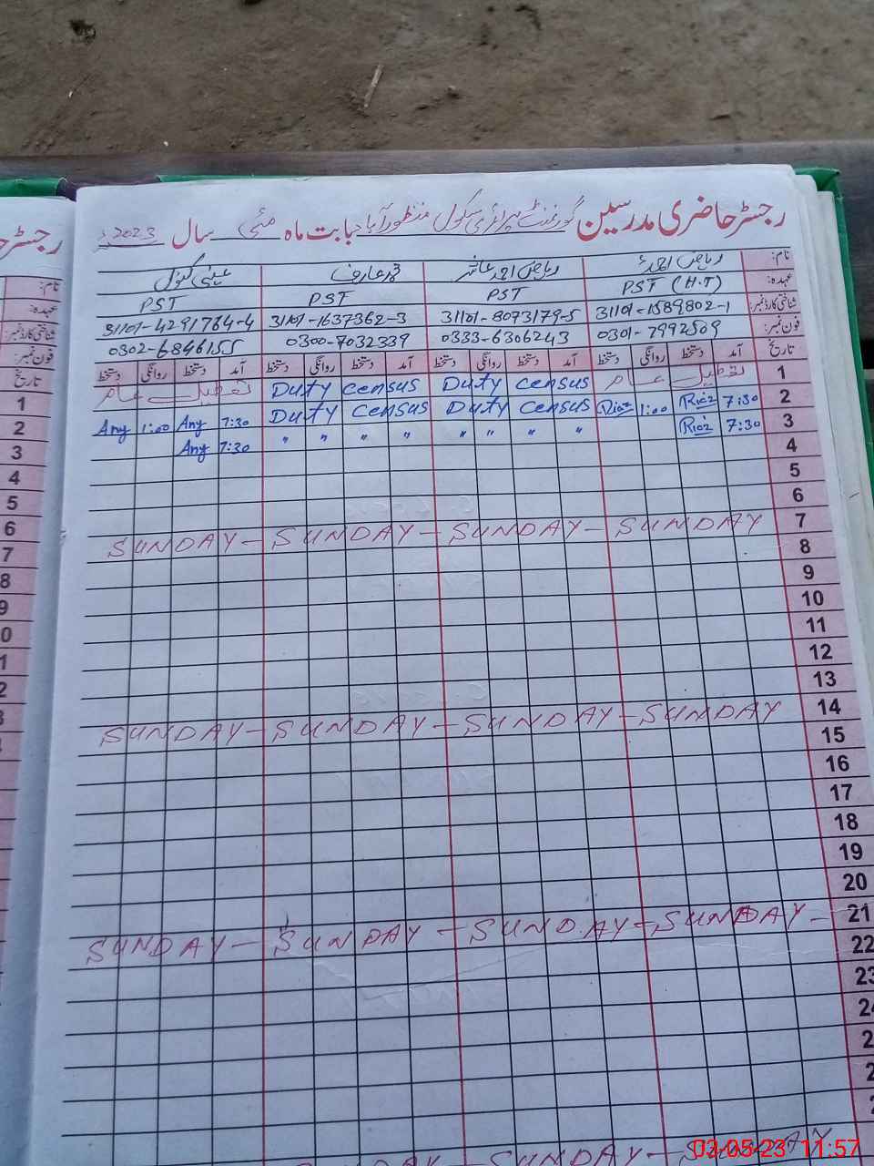 | Name: RI**** AH**** Designation: (School Headmaster's/Headmistress's) PST Phone/Cell Number: 03**** |