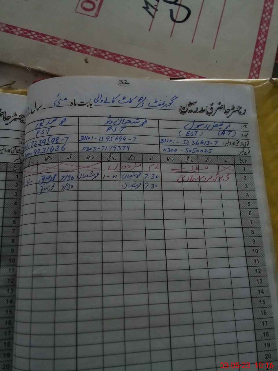 | Name: Kh**** Me**** Designation: (School Headmaster's/Headmistress's) EST Phone/Cell Number: 03**** |