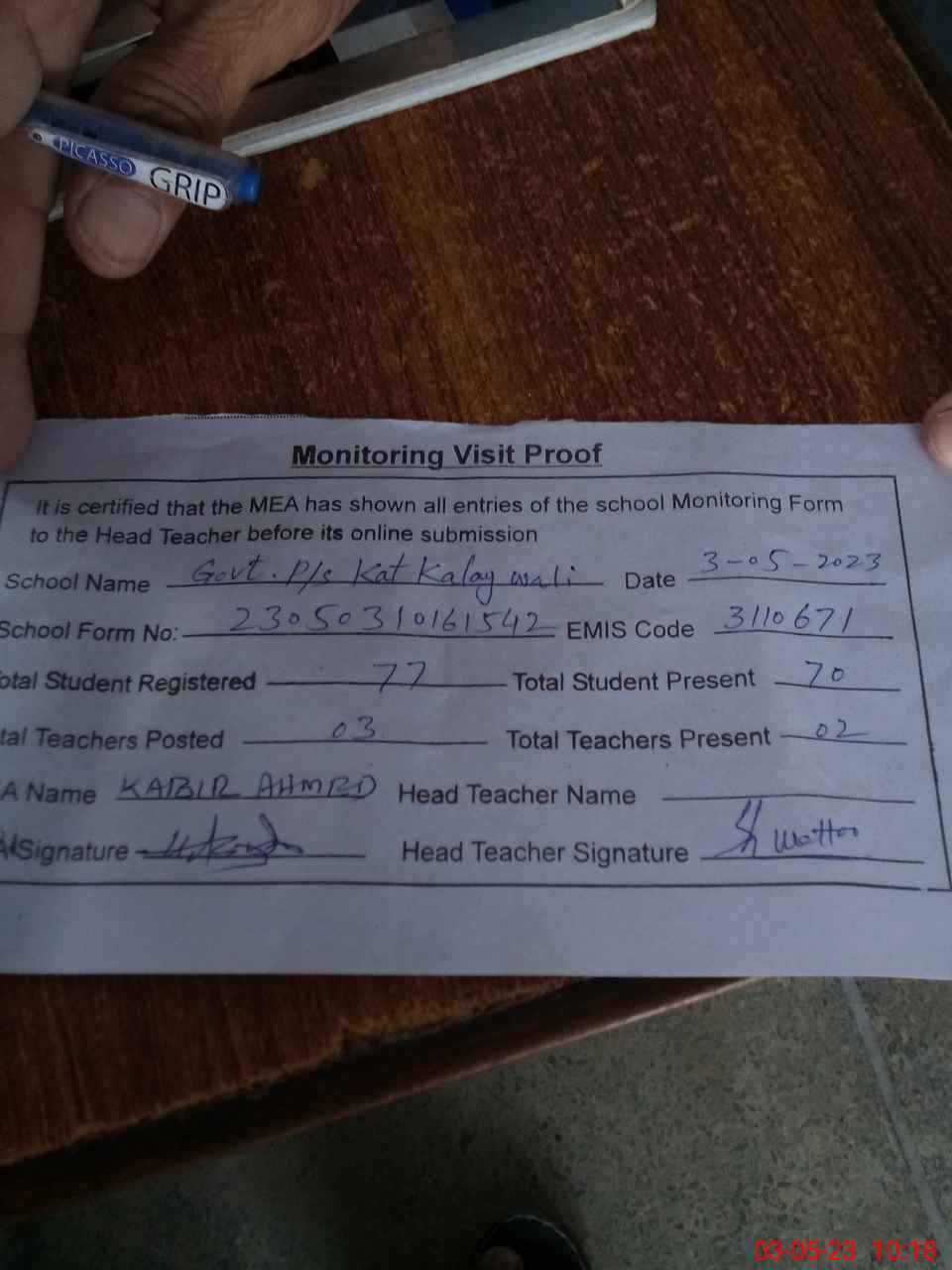 | EMIS Code: 31110671 | Name of School: GPS KAT KALY WALI | |||