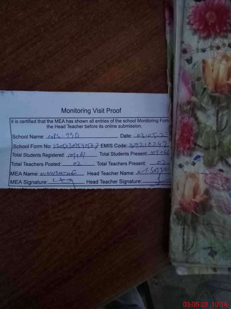 | EMIS Code: 39210242 | Name of School: GPS CHAK NO. 99 D | |||
