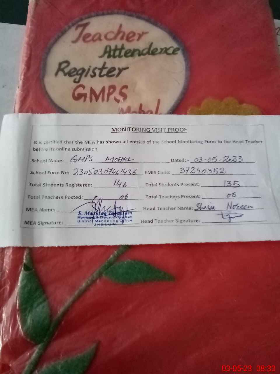 | EMIS Code: 37240352 | Name of School: GMPS MOHAL | |||