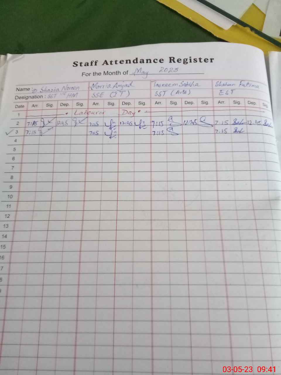 | CNIC | Full Name | Designation | R/C | Absence During Last Calender Month |