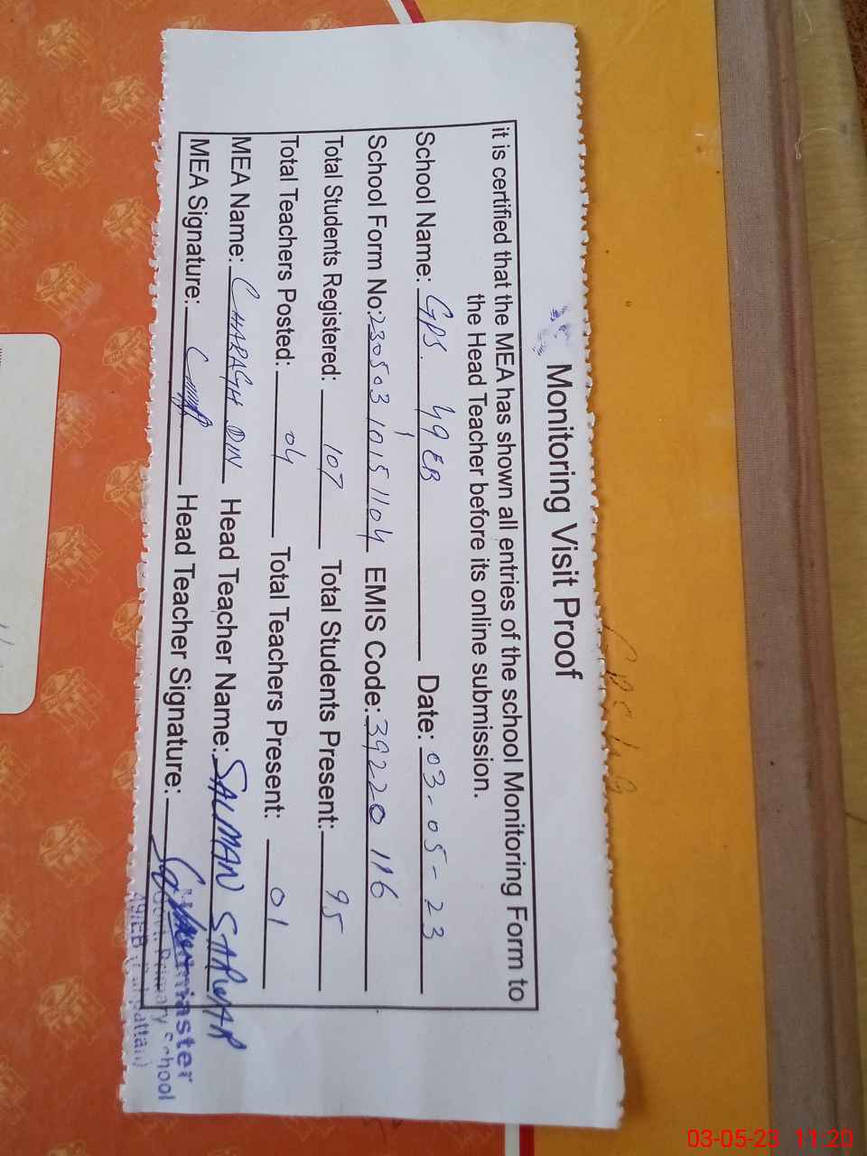 | EMIS Code: 39220116 | Name of School: GPS 49 EB | |||