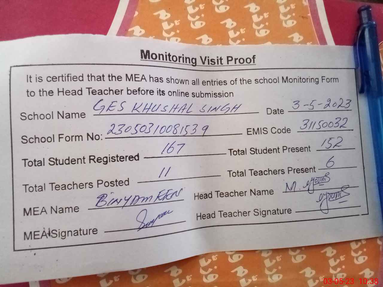 | EMIS Code: 31150032 | Name of School: GES KHUSHAL SINGH | |||