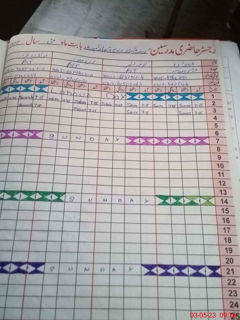 | CNIC | Full Name | Designation | R/C | Absence During Last Calender Month |