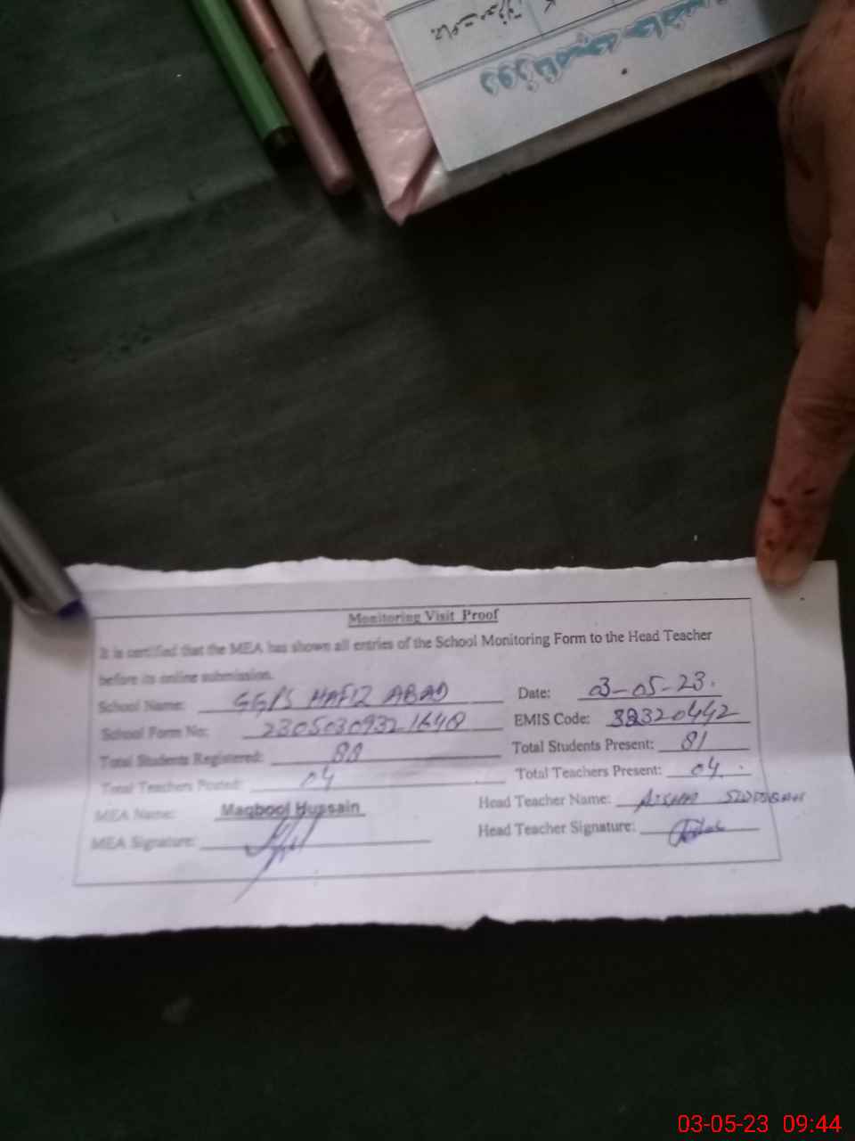 | Certified that this School was Inspected by the Undersigned MEA/DMO Today and the Information Stated Above is as Per Record. | |||||