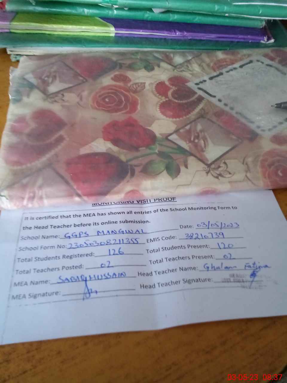 | Attendance Register | Head Teacher | MEA with School | Visit Proof |