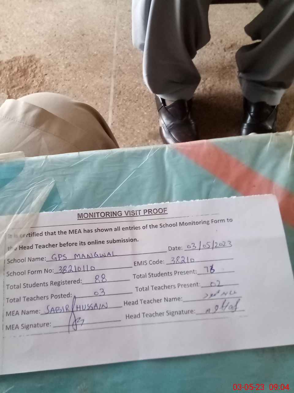 | Attendance Register | Head Teacher | MEA with School | Visit Proof |